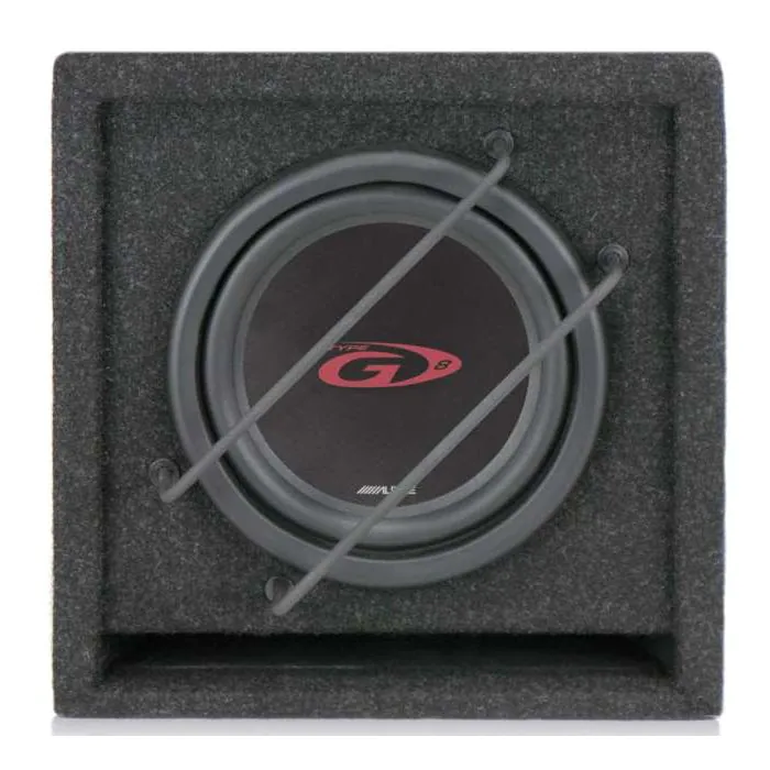 With 400W peak power handling, this ready-to-use bass reflex subwoofer box is just the thing for big bass fans. It has a pre-installed SWG-844 subwoofer and is all wired with high quality terminals in the back. Acrylic windows on the top and side provide an inside view and the blue illumination adds a cool effect. A protective grille ensures that nothing sliding around in the trunk damages the woofer.